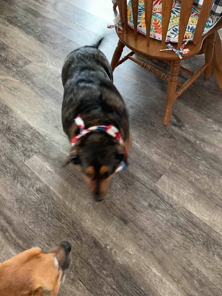 Lucy and Ethel got groomed today and now they have red, white, and blue scarves and look so patriotic.